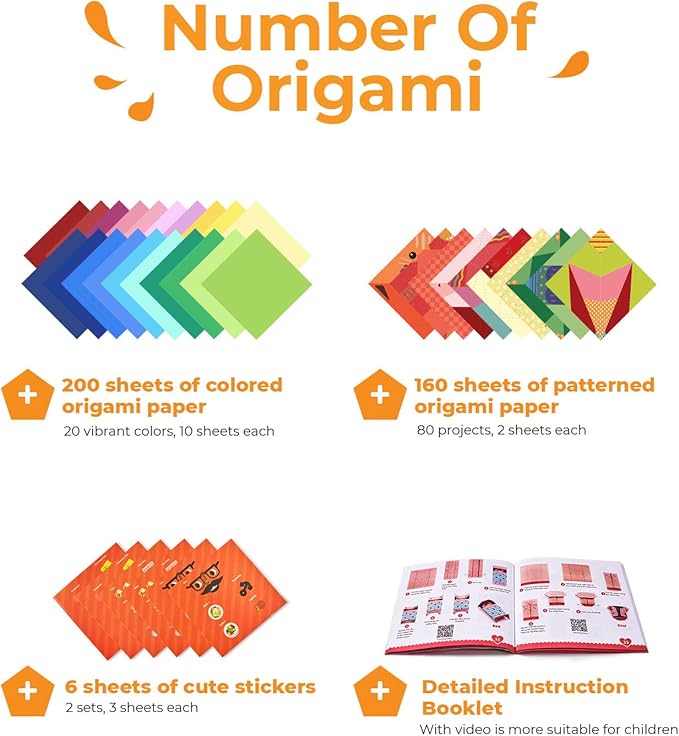Instructional origami book with video tutorial: This step-by-step origami book provides easy-to-follow instructions that make it easy for beginners and experienced origami artists alike. It's a great tool for children and parents to create origami crafts together.