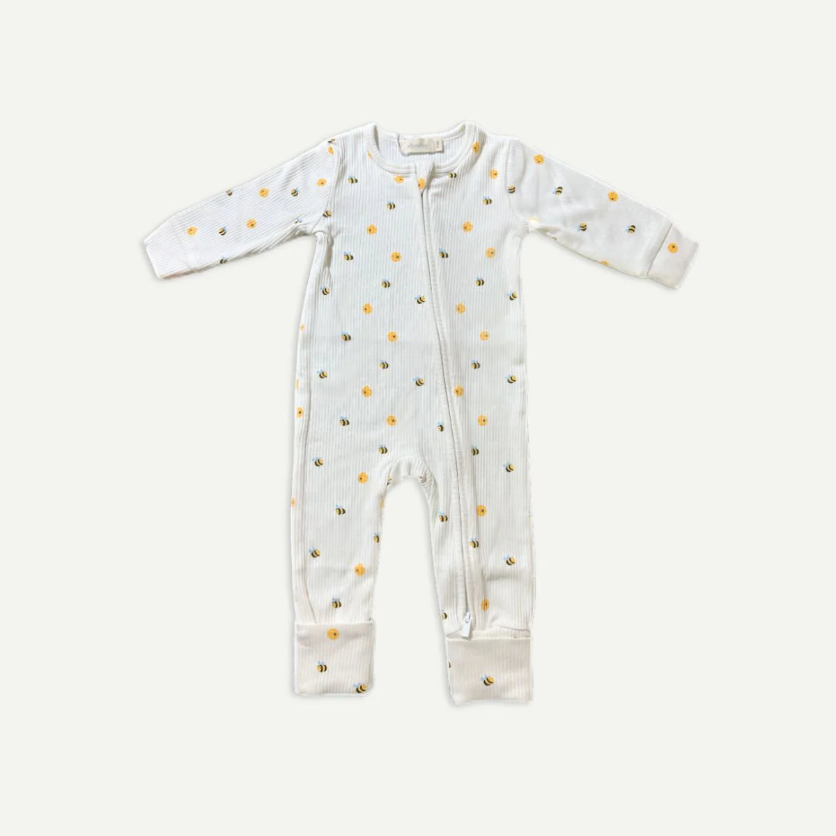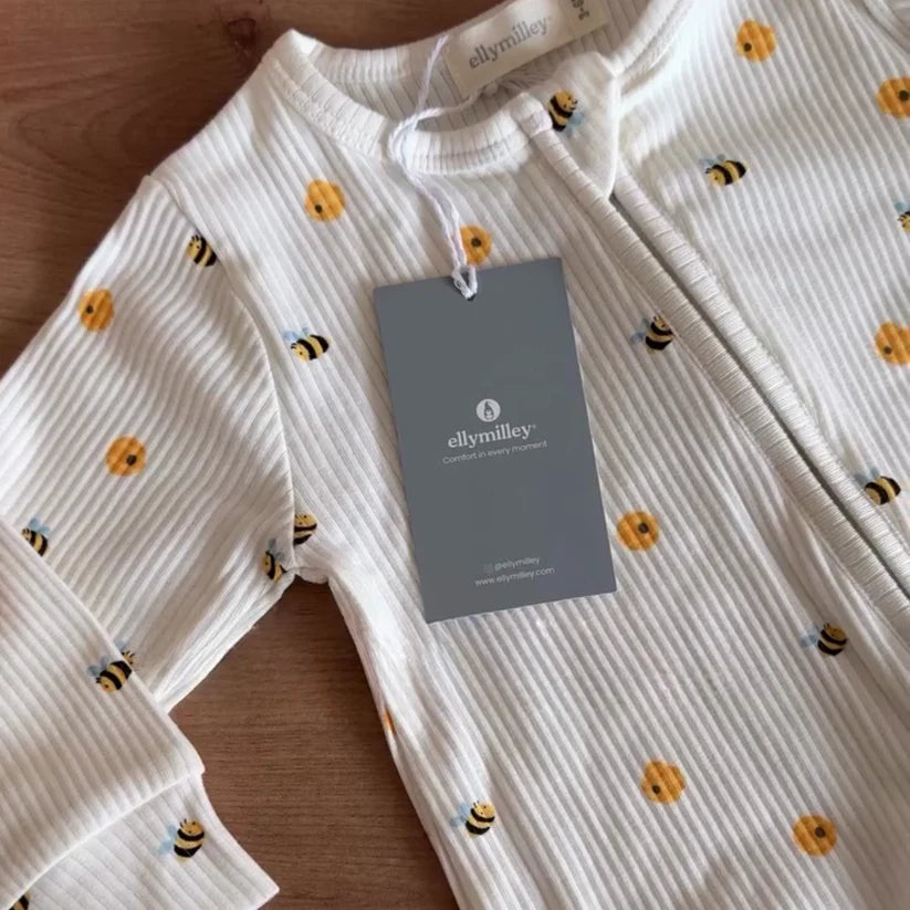 A cozy and practical one-piece sleepsuit crafted from a certified blend of TENCEL™ Modal and organic cotton, designed to keep your baby comfortable from playtime through naptime and bedtime. Featuring a full-length front zipper for easy dressing and quick nighttime diaper changes, this sleepsuit also has snug cuffs at the ankles and wrists so it stays in place as your little one moves. The soft, breathable, and hypoallergenic fabric offers exceptional comfort for delicate skin, while the cheerful Honey Bee print brings a playful sunny touch to bedtime.