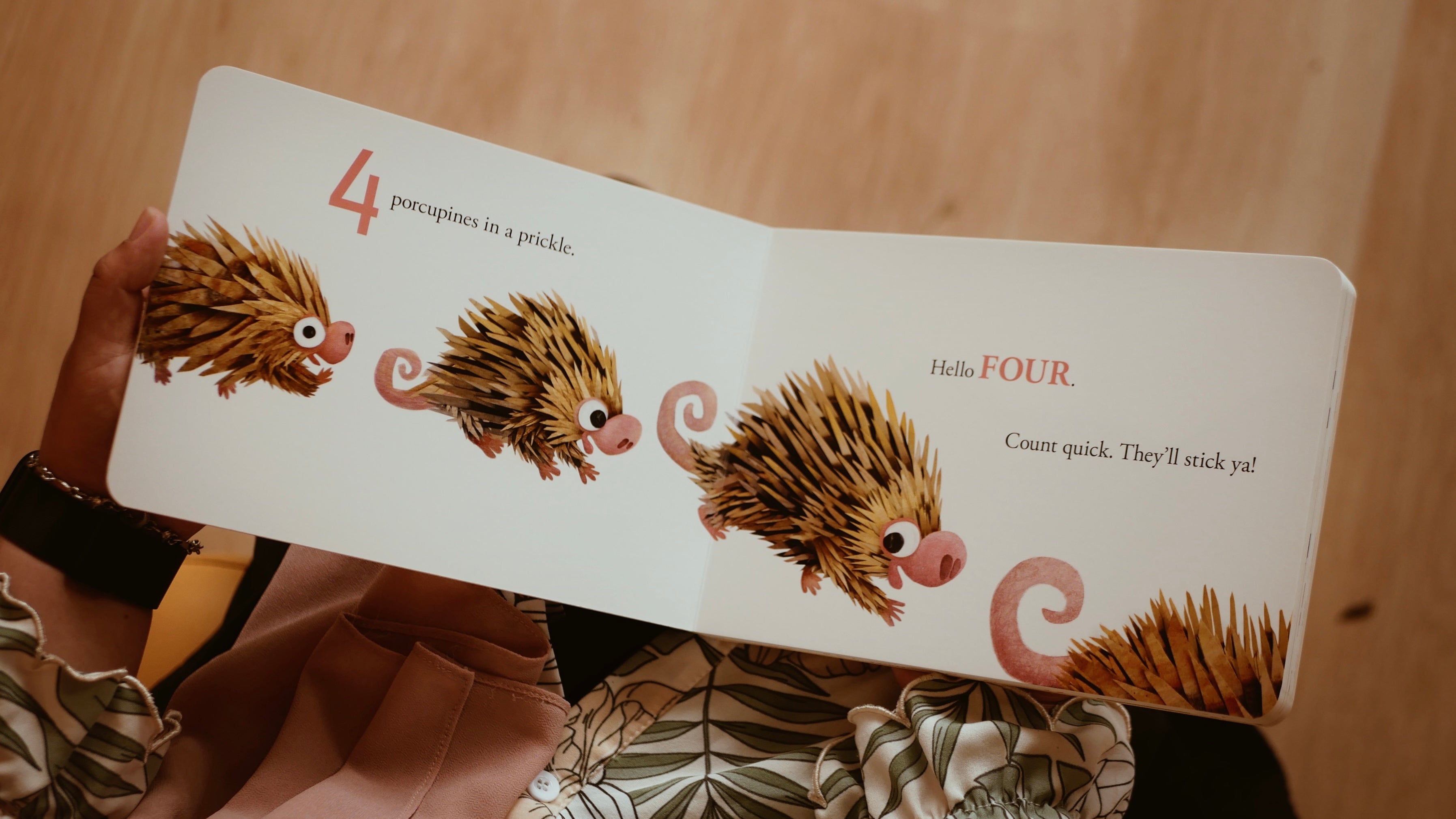 A charming collection of wild animals—three rushing rhinos, four prickly porcupines, five playful otters—introduce very young children to the fun of counting!