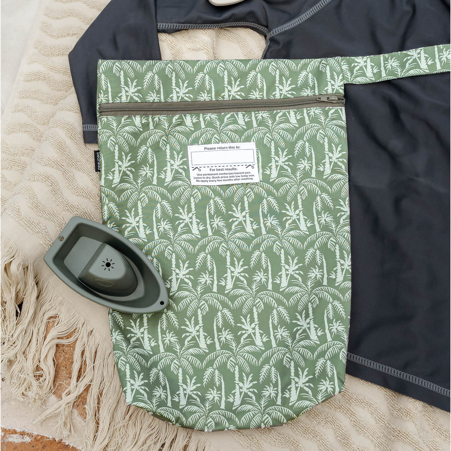 Keep the calm going post-swim with our Oasis Wet Bag—a serene palm-tree print in earthy tones that suits every age and stage. Whether you're packing away soggy swimwear or separating gear in your beach bag, this stylish pouch is equal parts practical and beautiful.